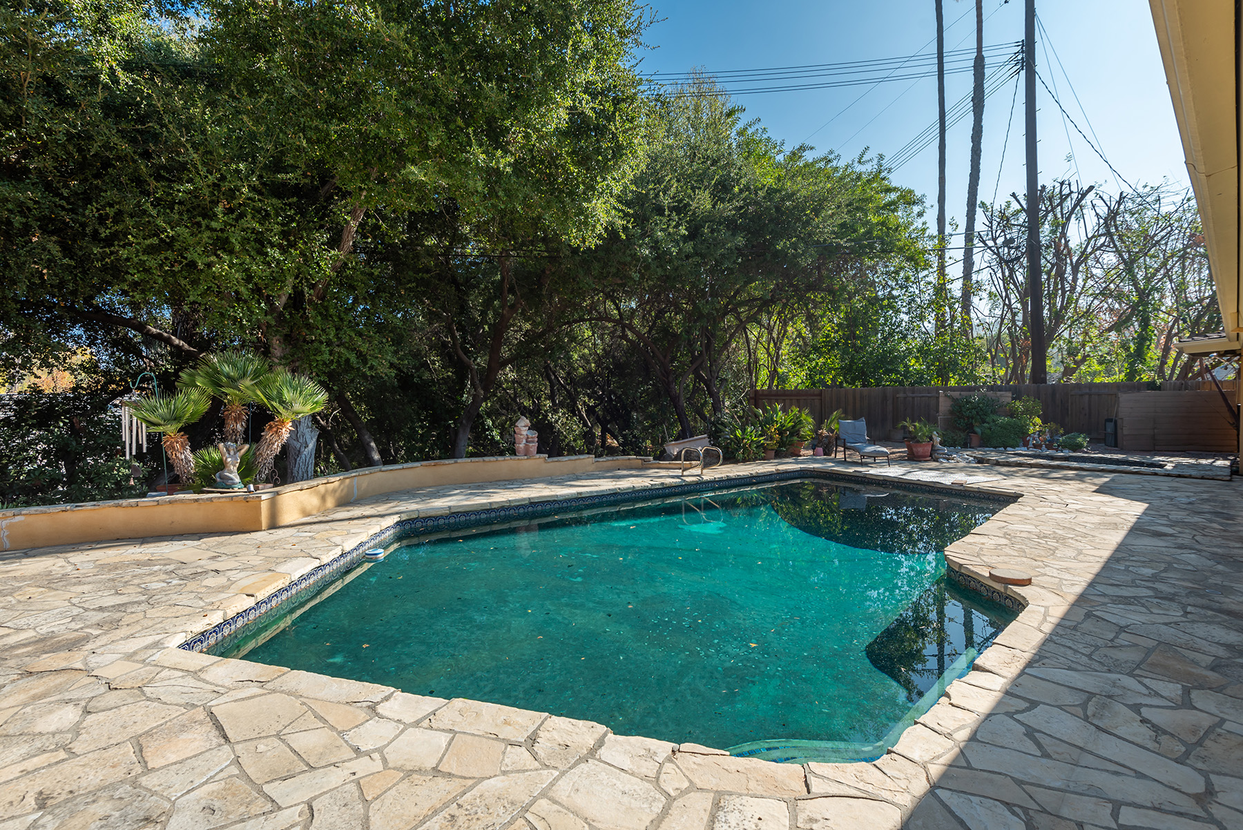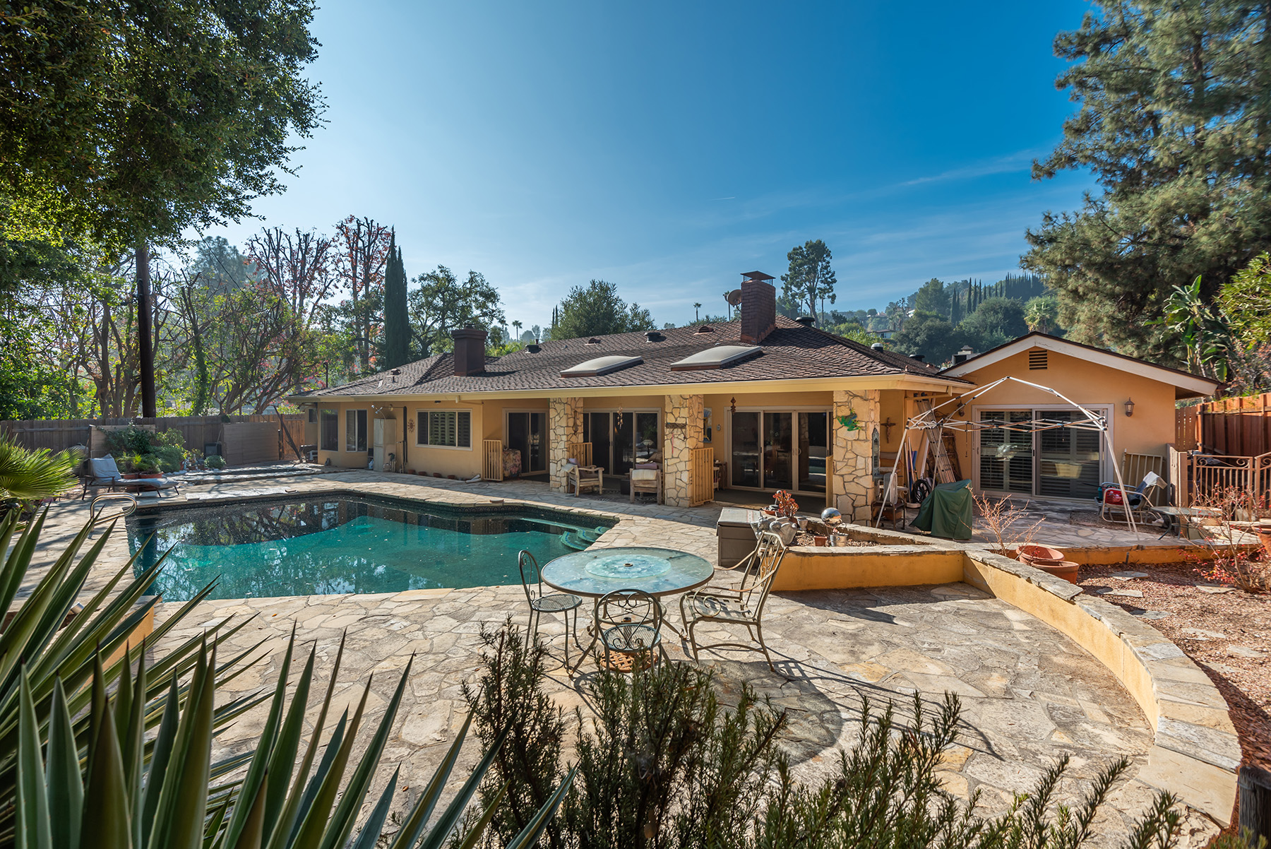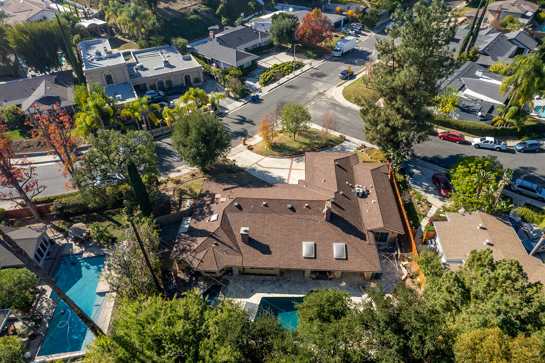 It is not often that a property like this comes for sale! Sprawling, well built ranch home with circular drive and huge frontage sits on just over Sqft 18,000 in prime Tarzana neighborhood. Sitting on a rare flat lot this 5 bedroom home offers 3234 s.f. of well thought out living space. Enjoy generous sized bedrooms, vaulted ceiling in living room, views from dining room, family room, living room and master of the sparking pool. There is one bedroom and 1 full bath on the side of the house off the garage that is perfect for a guest suite or office. The primary suite on the opposite side features a sitting area, fireplace and sliding doors to the covered patio. The backyard is a true oasis with a separate in ground hot tub, outdoor hot/cold shower & multiple patios including a large side yard. Gorgeous expansive wooded rear grounds feature a variety of exquisite mature trees that provide both beauty and privacy Whether you envision a garden, a sports court, ADU or Cabana the backyard has endless possibilities. Location is key: South of the Blvd. cul-de-sac , single level floor plan with tremendous potential to add a second story if you want a view. This home has been in the family for a long time and welcomes its next owner who can create his/her dream home.