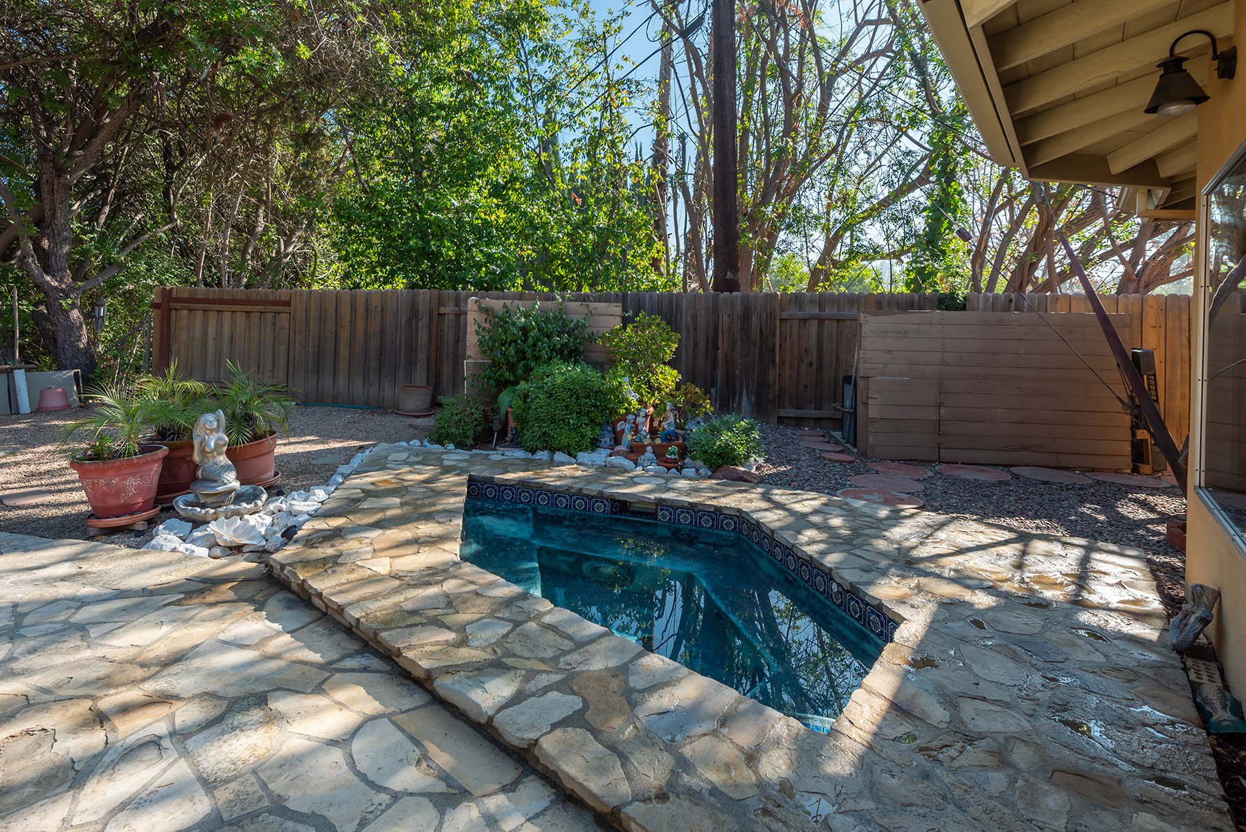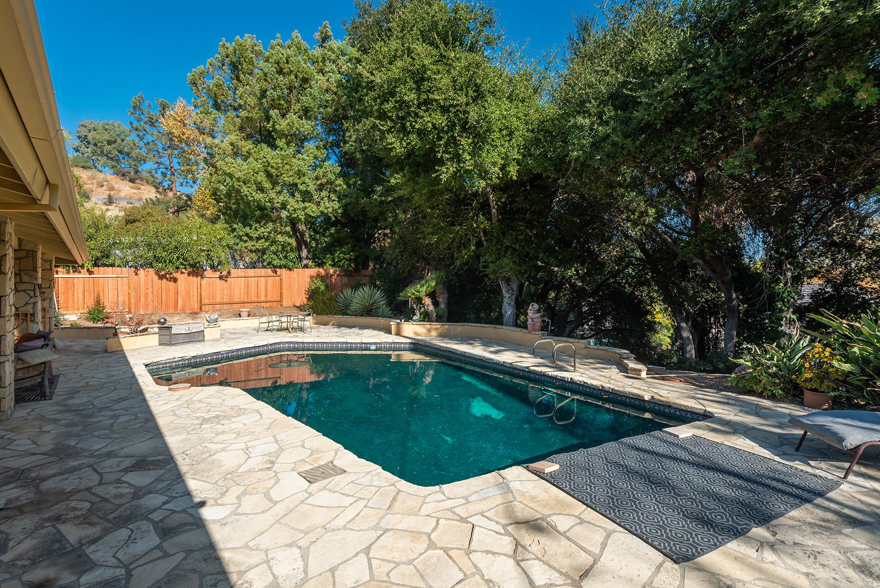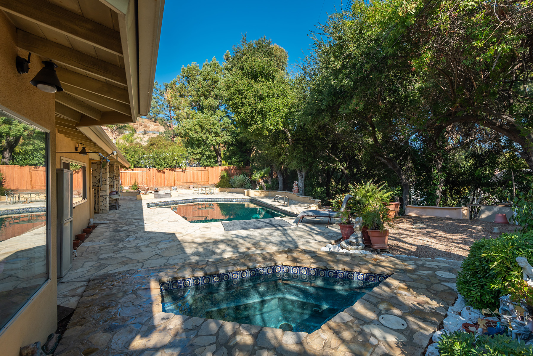 It is not often that a property like this comes for sale! Sprawling, well built ranch home with circular drive and huge frontage sits on just over Sqft 18,000 in prime Tarzana neighborhood. Sitting on a rare flat lot this 5 bedroom home offers 3234 s.f. of well thought out living space. Enjoy generous sized bedrooms, vaulted ceiling in living room, views from dining room, family room, living room and master of the sparking pool. There is one bedroom and 1 full bath on the side of the house off the garage that is perfect for a guest suite or office. The primary suite on the opposite side features a sitting area, fireplace and sliding doors to the covered patio. The backyard is a true oasis with a separate in ground hot tub, outdoor hot/cold shower & multiple patios including a large side yard. Gorgeous expansive wooded rear grounds feature a variety of exquisite mature trees that provide both beauty and privacy Whether you envision a garden, a sports court, ADU or Cabana the backyard has endless possibilities. Location is key: South of the Blvd. cul-de-sac , single level floor plan with tremendous potential to add a second story if you want a view. This home has been in the family for a long time and welcomes its next owner who can create his/her dream home.